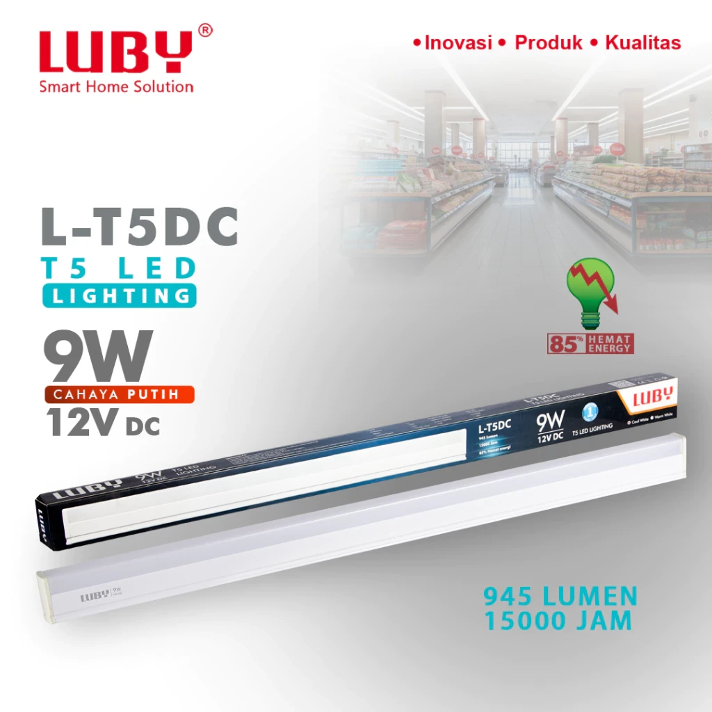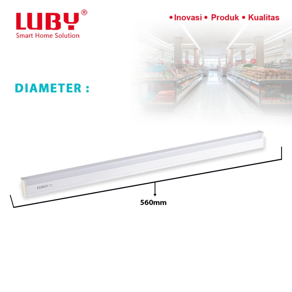 Lampu tabung LED dengan fitting T-5 dan cahaya putih 6500K. Hemat energi dan cocok untuk rak display, plafon, atau area indoor yang memerlukan pencahayaan merata.